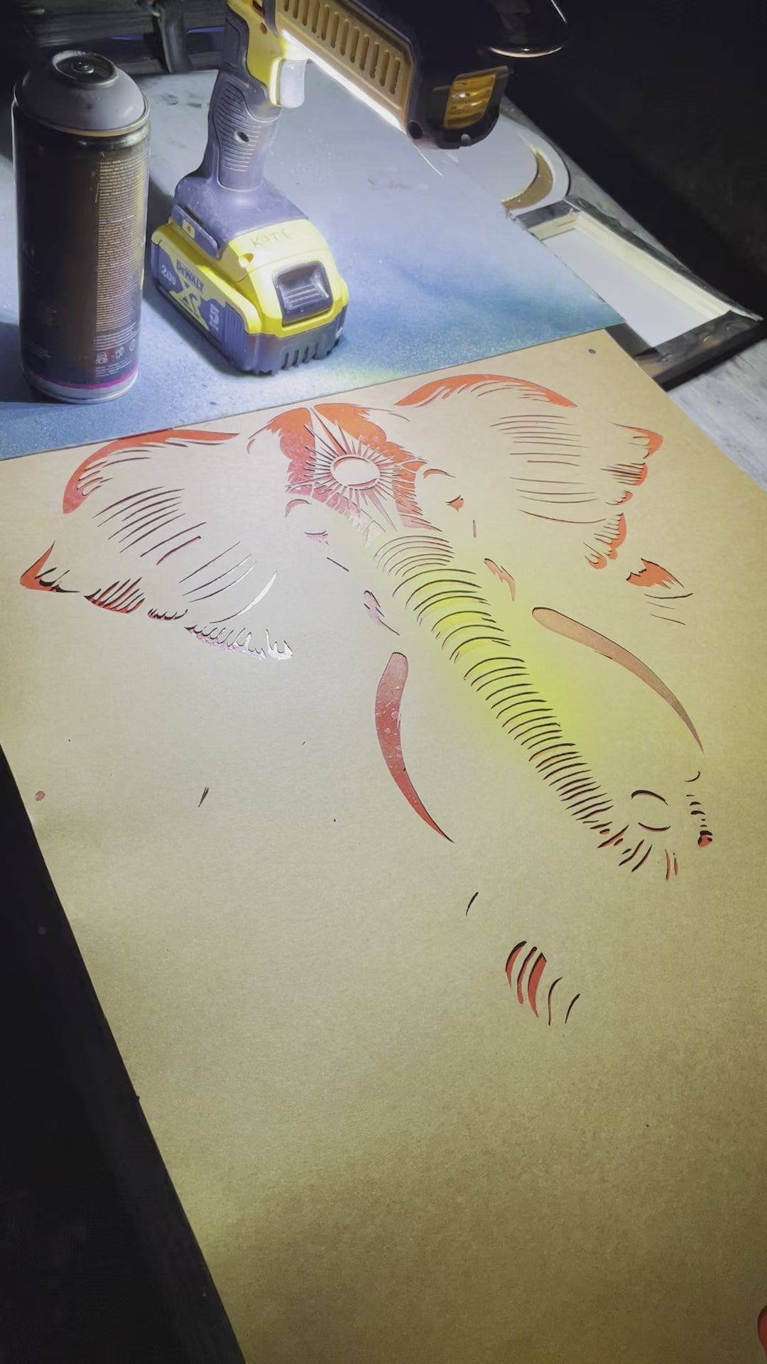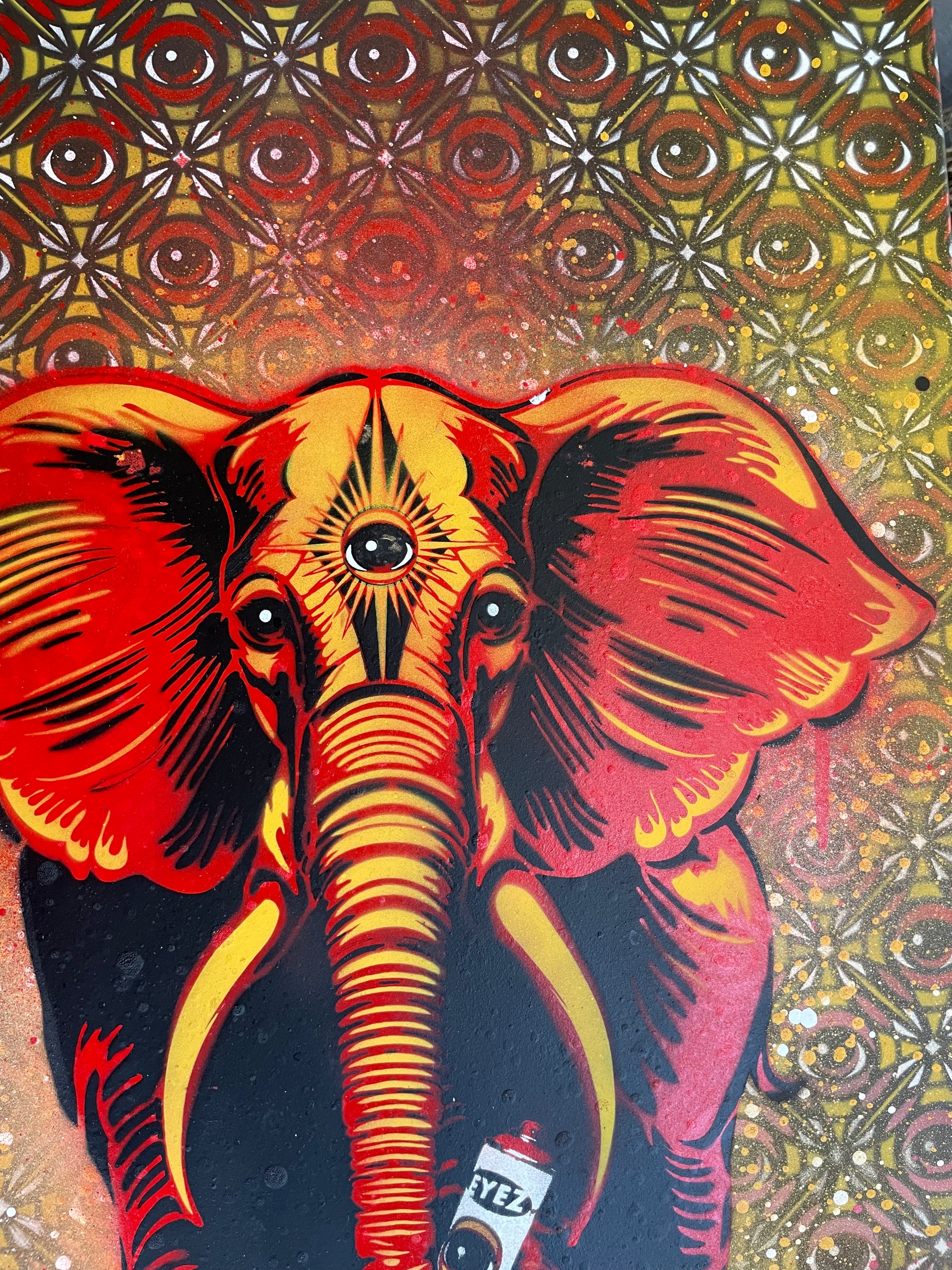 Based off Eyez wall from Paint Louis 2023 is the 3rd Eye elephant on a 17.5 x 36 inch metal panel.