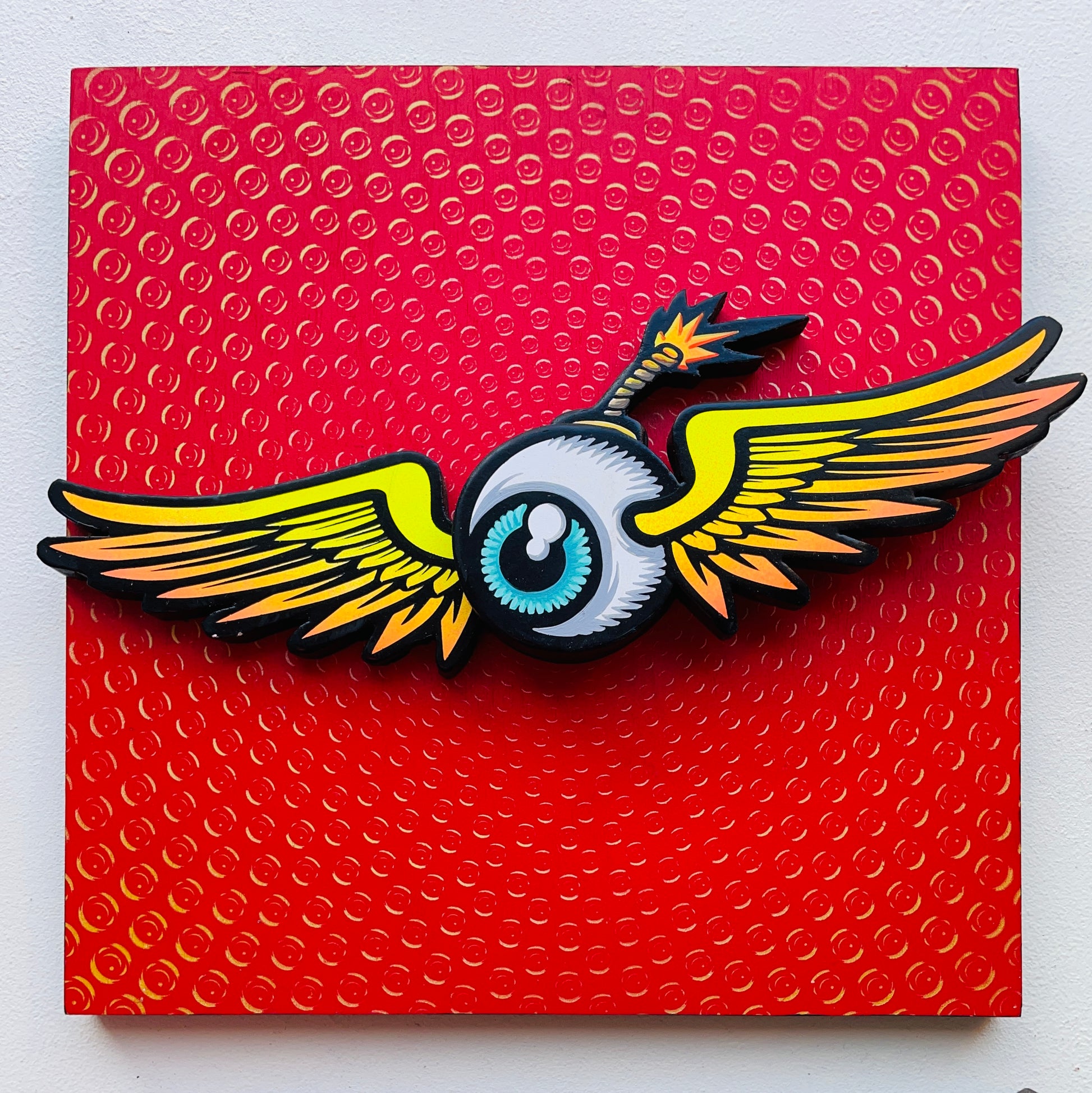 @Eyez Collaboration with wood cut-out Master Burn353 “EyeBomber” - 12x12 wood panel made for the 2023 C👁LLAB👁RATE exhibit in Chicago.