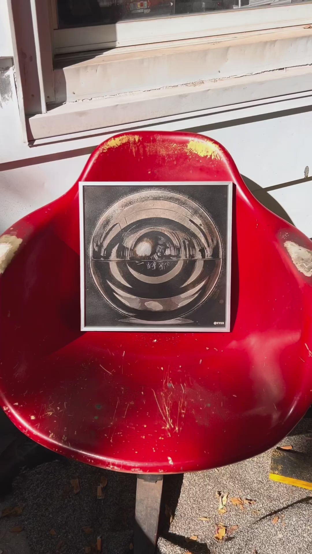 Eyez are the window to your Soul and this 12x12 engraving on metal features a self portrait of the artist Pear Eyez. Framed in 1 inch deep Aluminum frame.