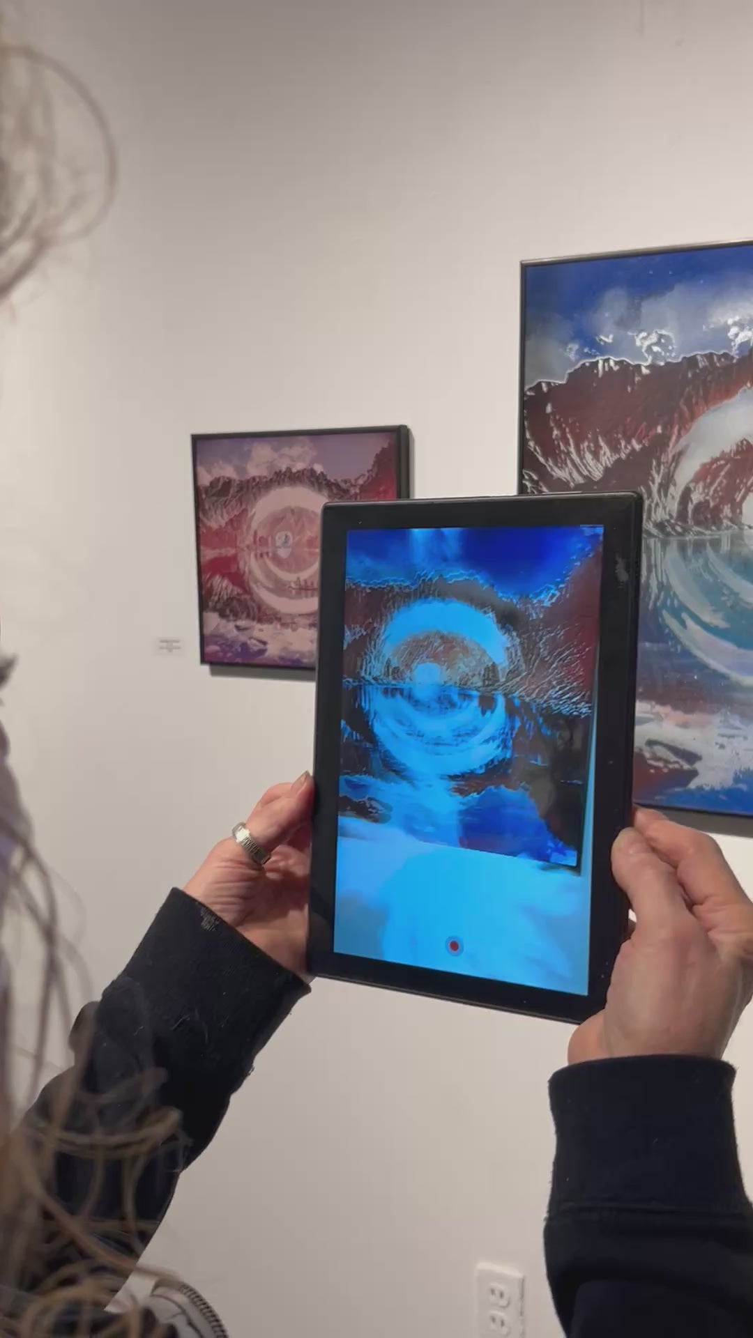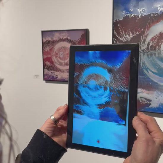 This metal engraving is 24x24 inches and is framed in an aluminum frame. It also has Augmented Reality activation that comes alive before your Eyez via the Artivive App