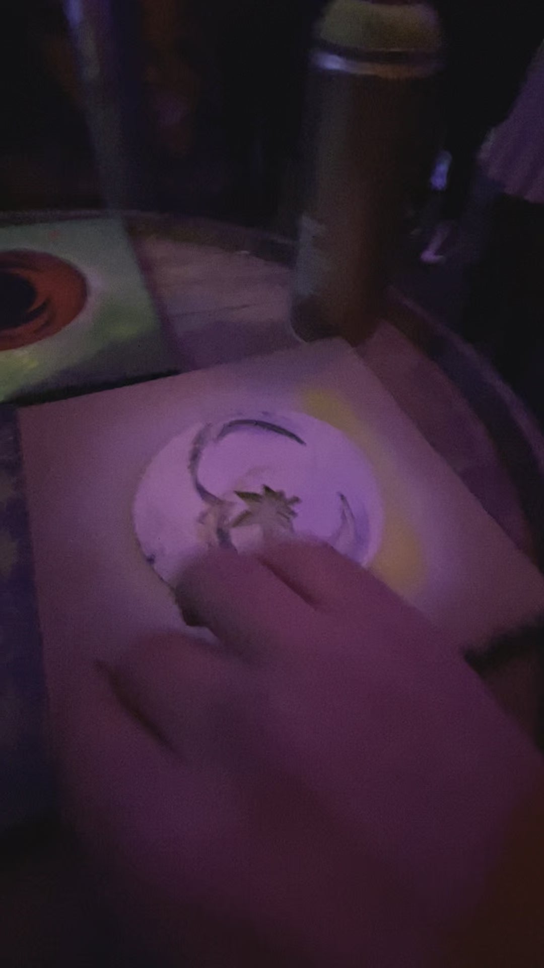 Peat Eyez brings in the Green New Year (Celebration of Recreational Cannabis in his state of Missouri) with this glow-in-dark 8x8 inch canvas painting. This was painted live by Eyez at Afroman’s NYE bash at the Broadway Boat Bar 2022…some his his last paintings of the year!