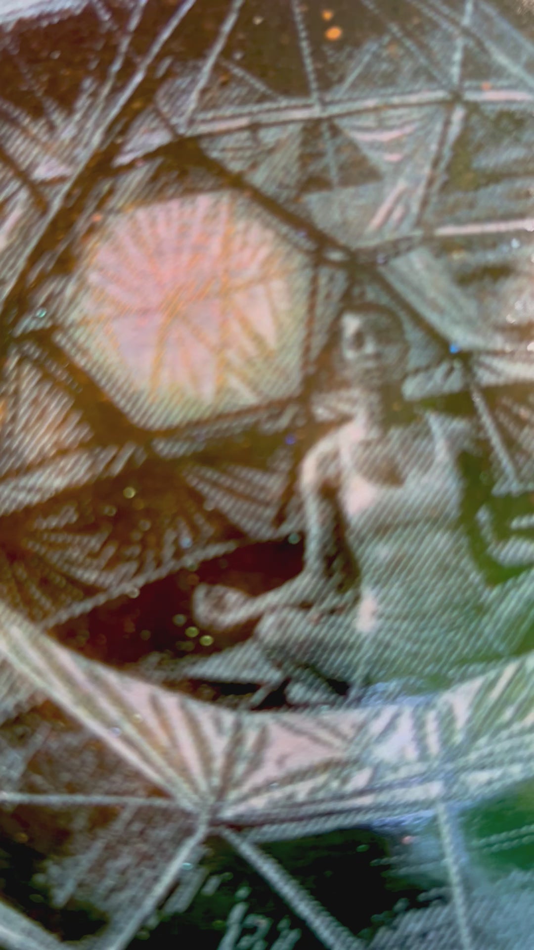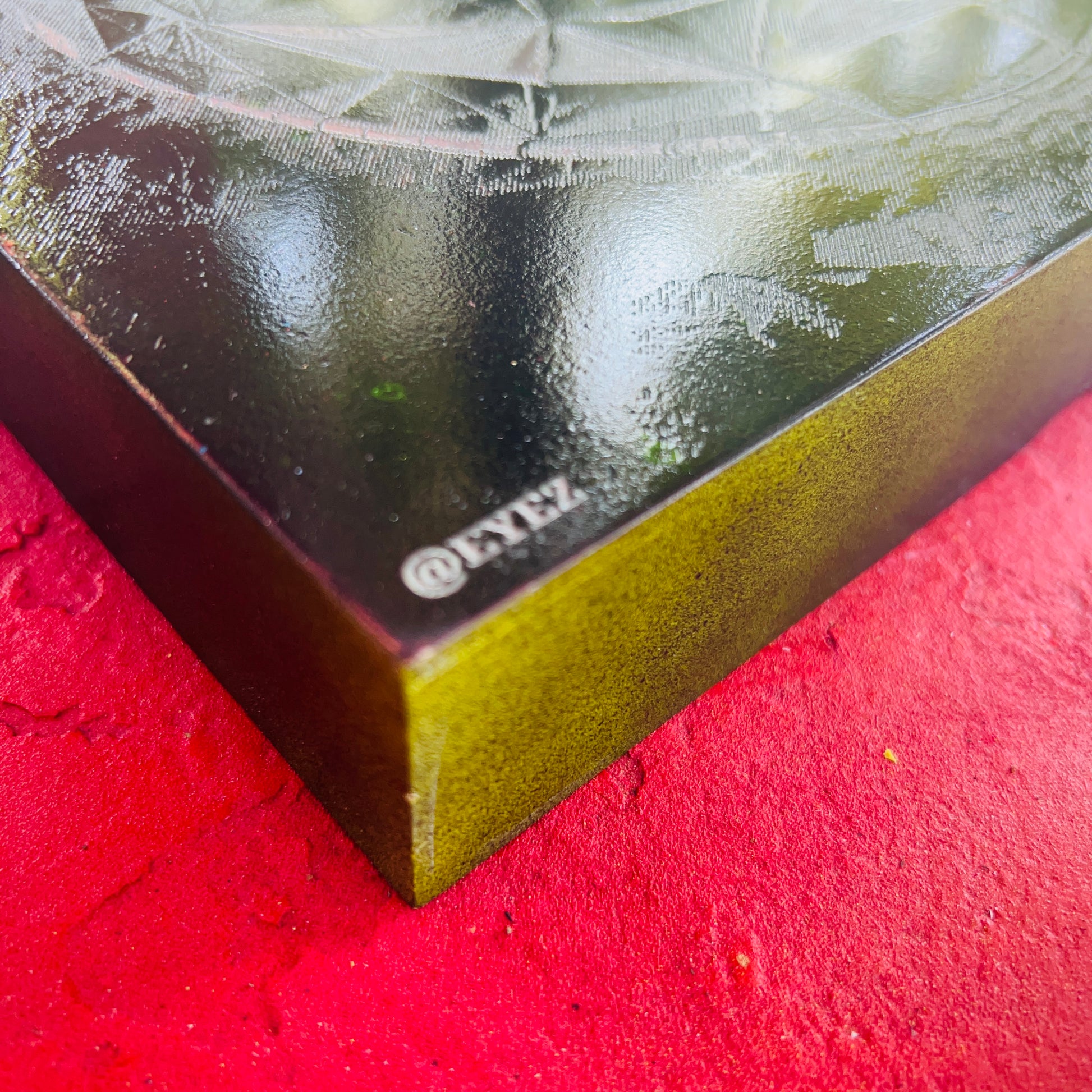 Eyez are for the present in this meditative geodesic dome spray paint on 10x10 wood Engraving