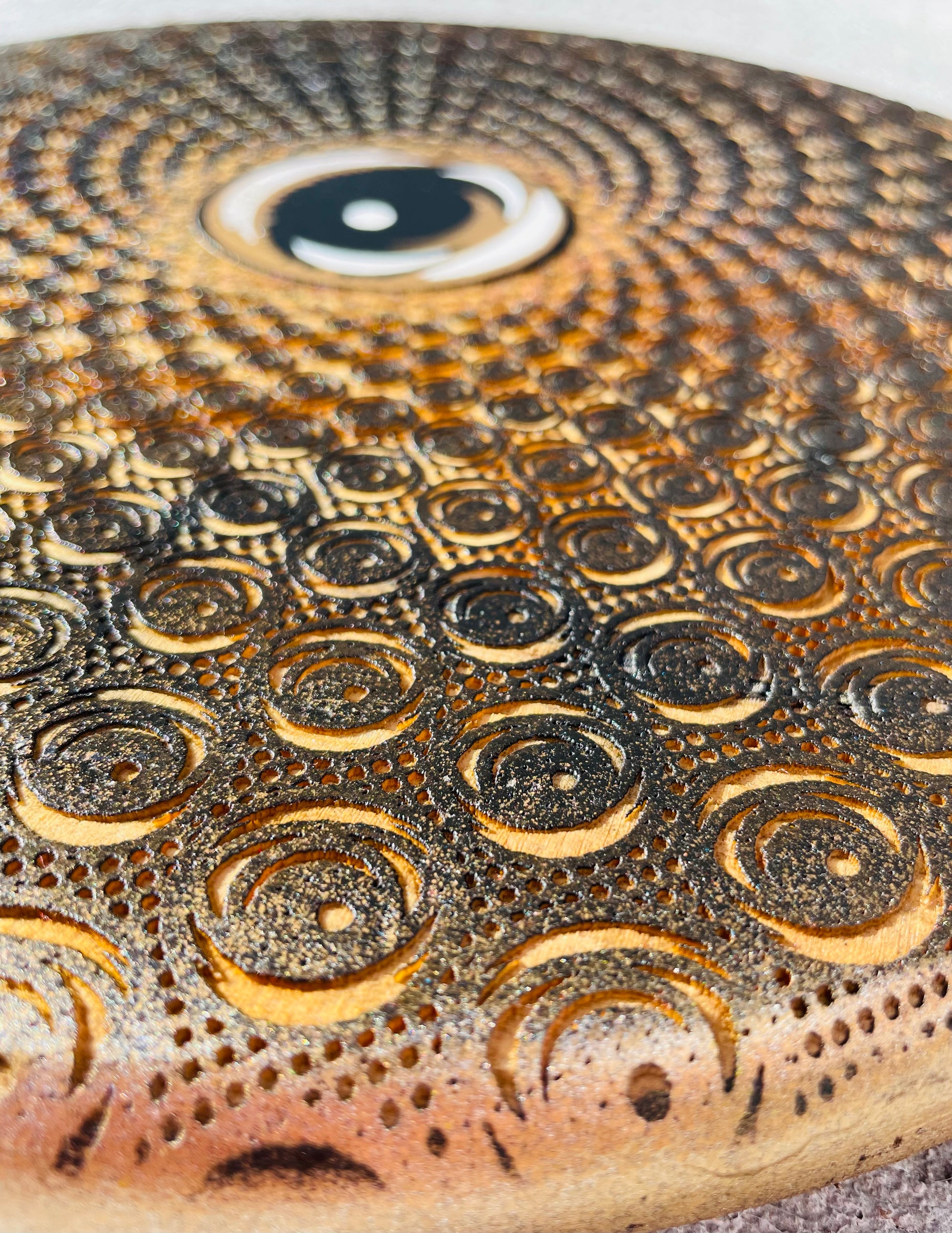 Golden EYEZ in the Vortex - 12x12 engraved panel.