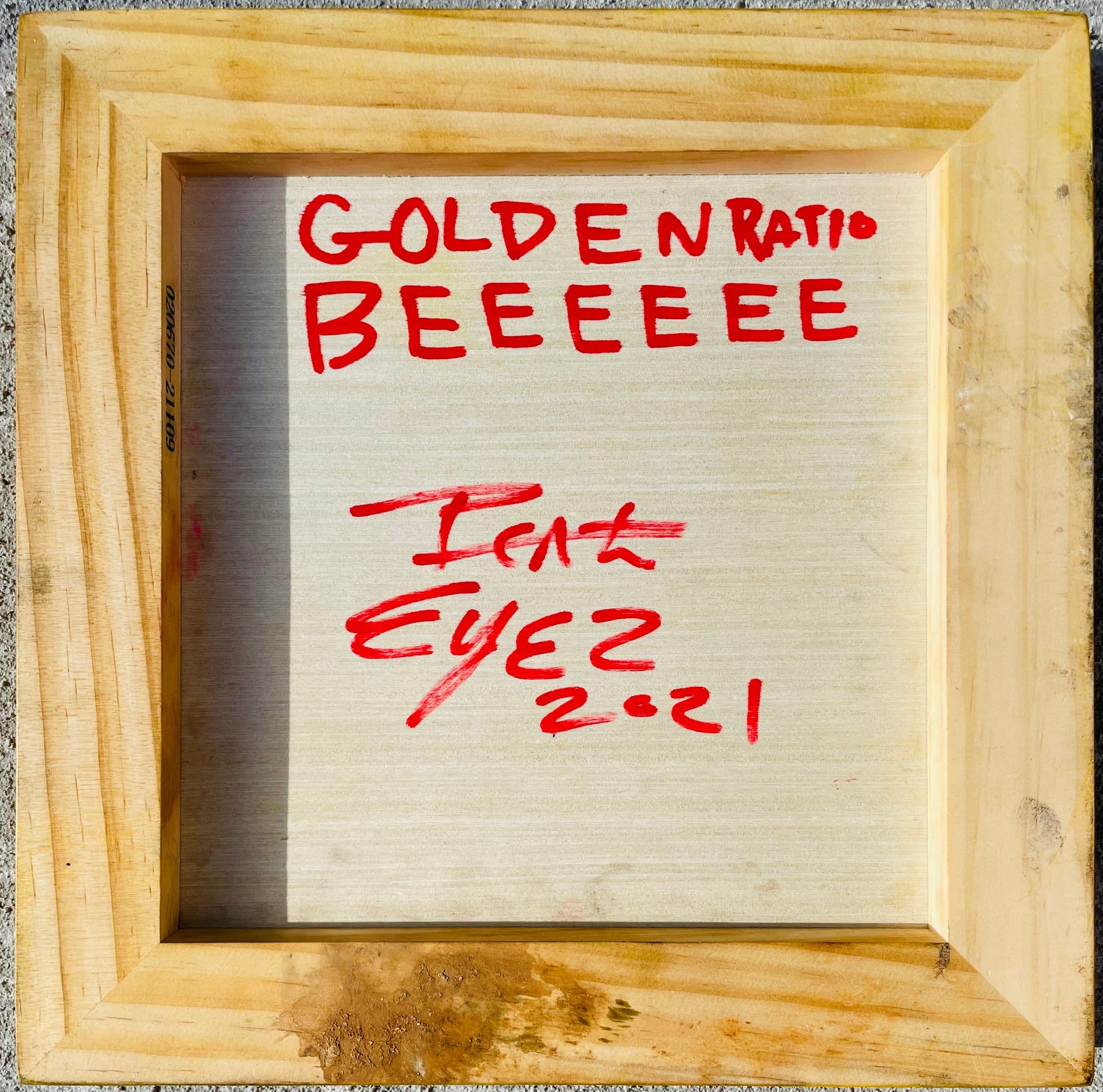 Eyez focuses on Fibonaccis Golden ratio and the sacred geometry of the Bee in this 10x10 inch engraving on a cradled wood panel. Featuring a primary colors.