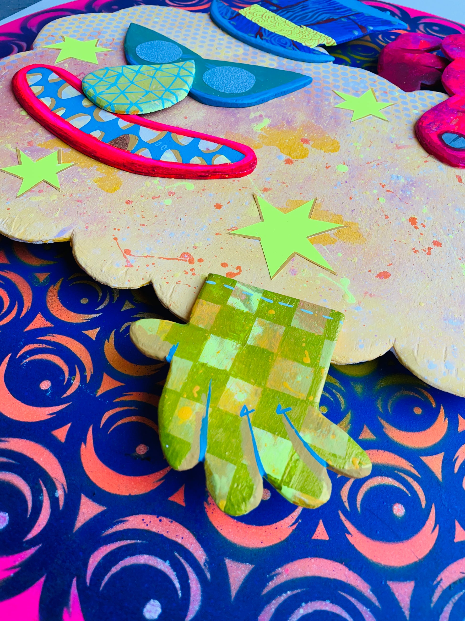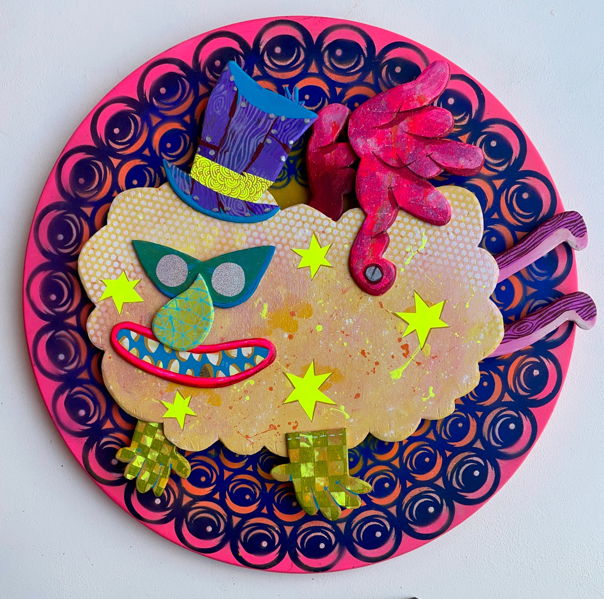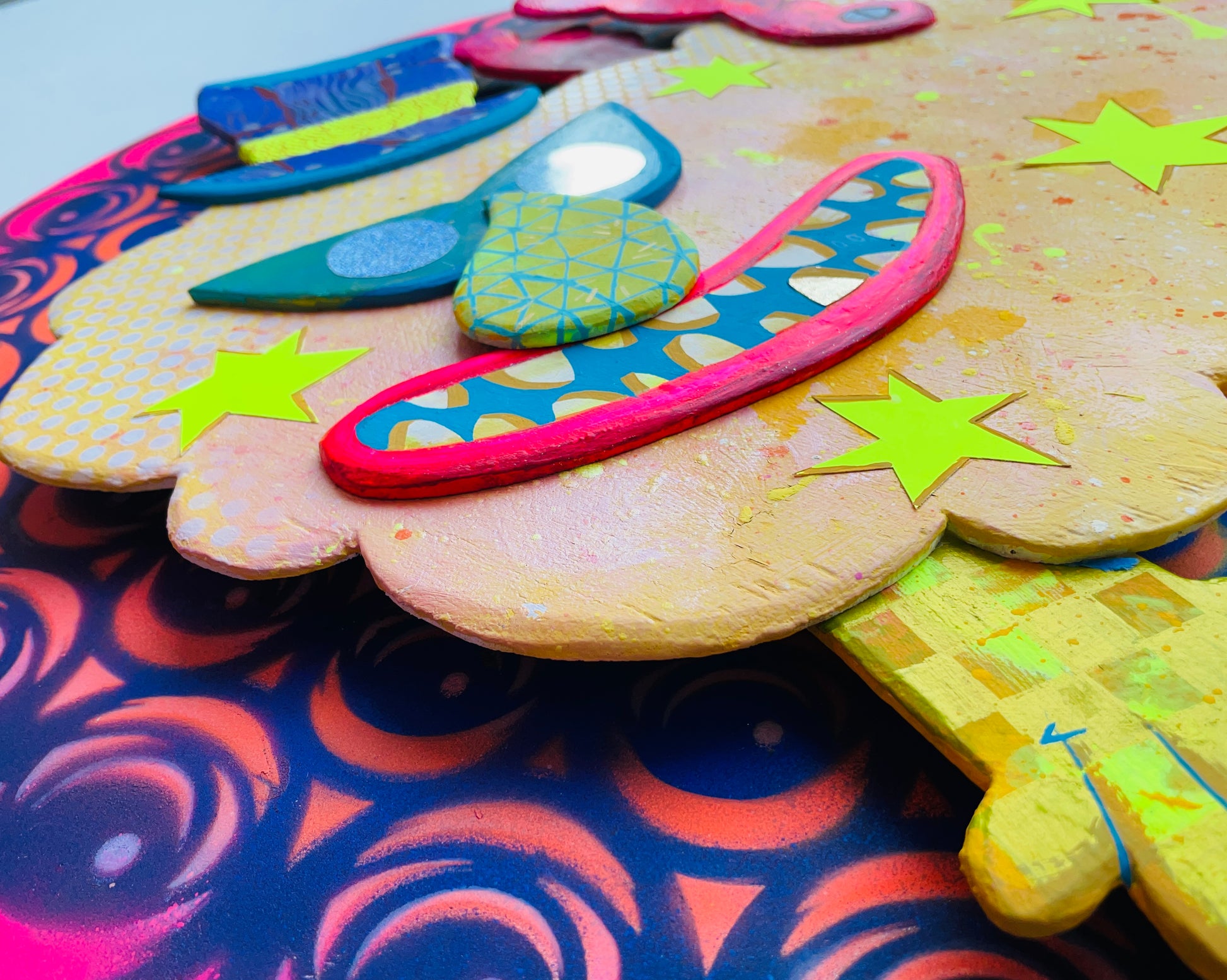 @Eyez Collaboration with Chicago Artist Nerfect - “Professor Thomasthina Noobliques the Unpercievable” 24x24 inch wood panel with painted cut-outs from the 2023 C👁LLAB👁RATE exhibit in Chicago
