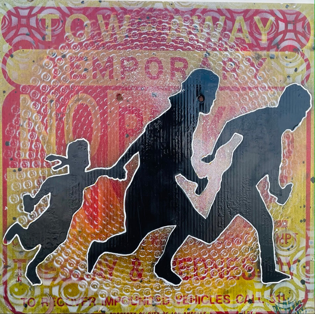 @Eyez Collaboration with LA Artist @og_drewone on a upcycled Tow Sign on coroplast.
