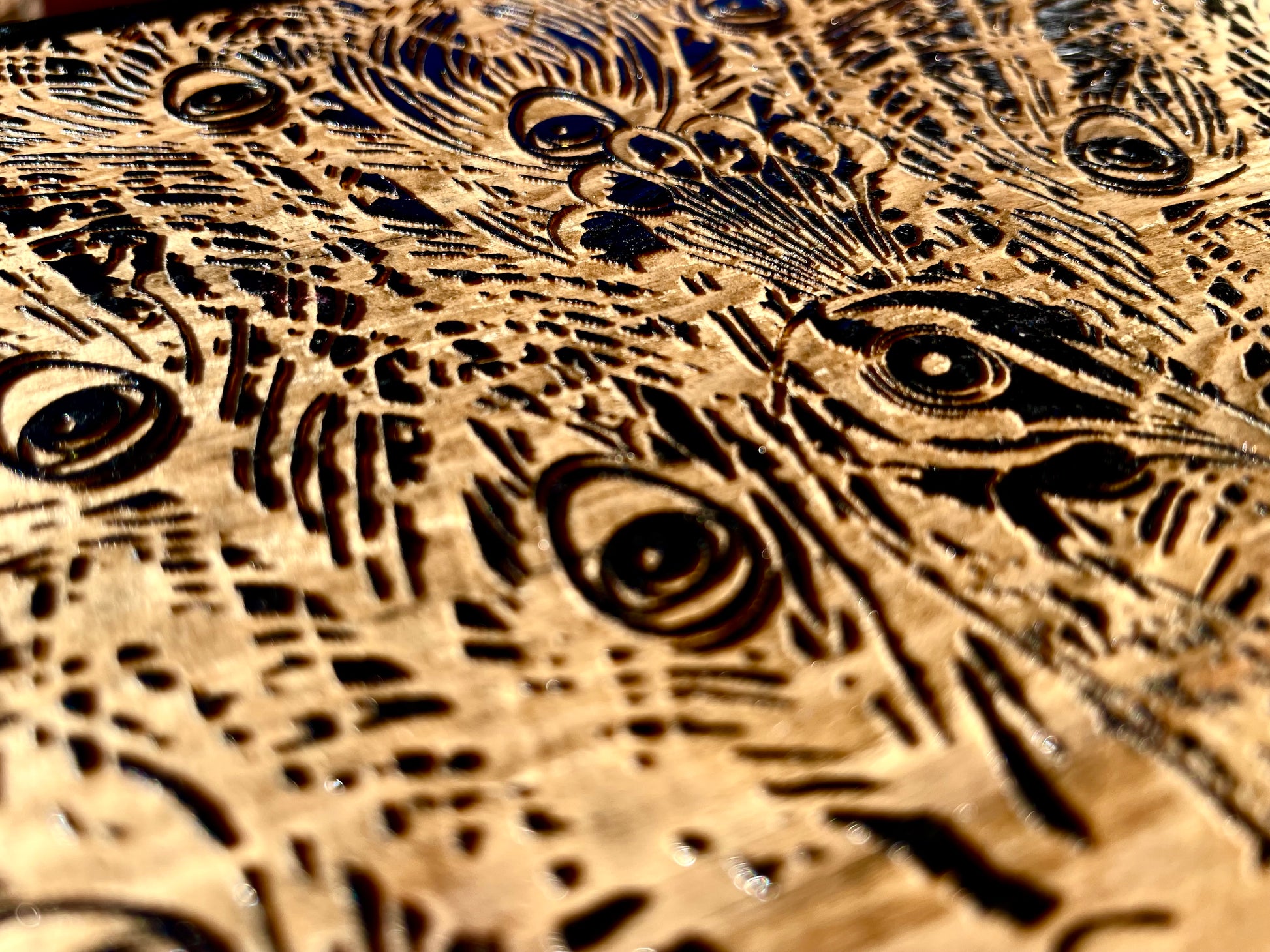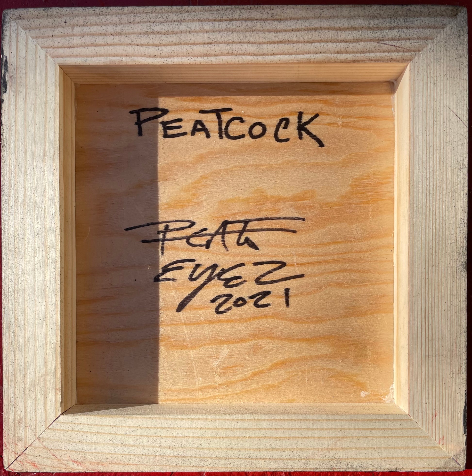 This 8x8 cradled Wood Panel engraving featuring Peat Eyez “Peatcock” signed on back.