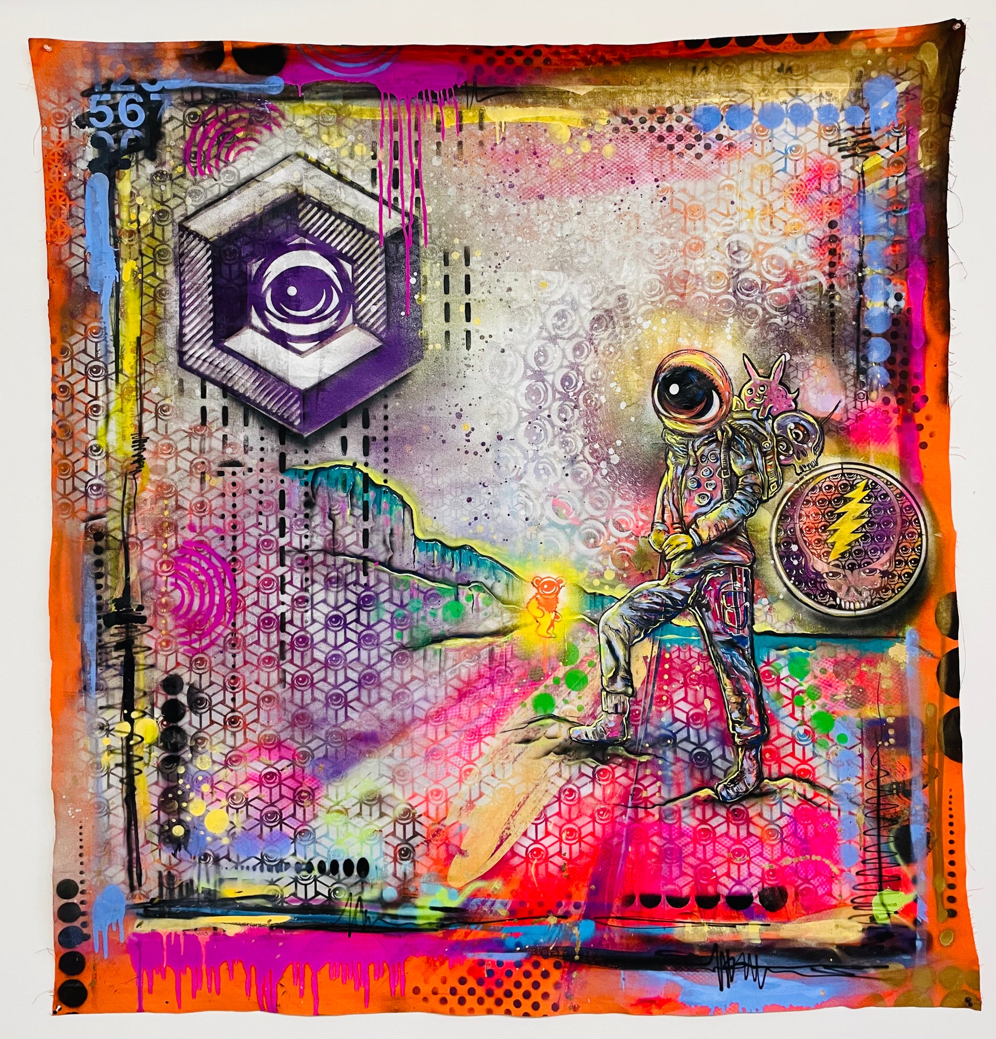 @Eyez Collaboration with Chicago Artist Rodney Durrant Art - the Traveler - Large Free Hanging canvas from the 2023 C👁LLAB👁RATE exhibit in Chicago