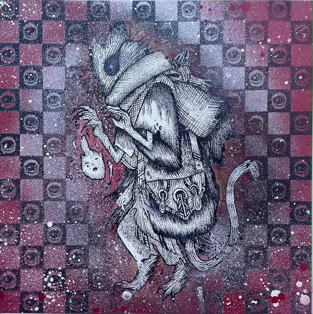 12 inch canvas - microns posca and spray-paint from the 2022 C👁LLAB👁RATE exhibit in Memphis